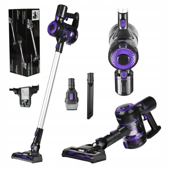 • Bezprzewodowy Odkurzacz Pionowy LED 0,8L Fioletowy 2200mAh Kraft&Dele