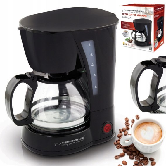 Przelewowy ekspres do kawy Esperanza ROBUSTA sprawi, że codziennie będziesz miał ochotę na poranną, świeżo parzoną kawę. Pojemność 0,6 l zapewni optymalną ilość kawy dla dwóch osób. Ekspres do kawy Esperanza ROBUSTA przyrządzi ulubioną, pełną wspaniałego aromatu i smaku kawę szybciej i łatwiej.