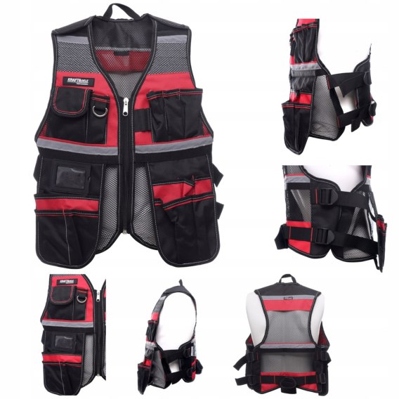 Robocza kamizelka monterska (narzędziowa), ułatwia przenoszenie i przechowywanie najczęściej używanych narzędzi i innych przedmiotów takich jak telefon, dokumenty, czy osobiste drobiazgi. Dzięki naszej kamizelce będziesz je miał zawsze w przy sobie, jednocześnie posiadając wolne ręce niezależnie od miejsca w którym pracujesz: na dachu, na rusztowaniu, czy przy maszynie. Kamizelka jest wykonana z przewiewnego materiału, zapewniającego komfort termiczny i ułatwiającego oddychanie skóry, a regulowane paski umożliwiają dopasowanie do sylwetki użytkownika. Dzięki widocznym z daleka pasom odblaskowym będziesz mógł pracować bezpiecznie nawet w nocy.