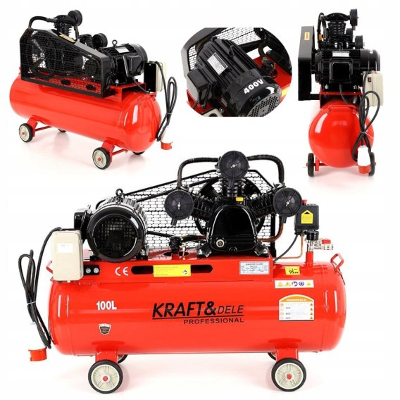 • Kompresor Olejowy Sprężarka 100l 8 bar 3 Tłoki 400V 5.6KM/4.1KW Kraft&Dele