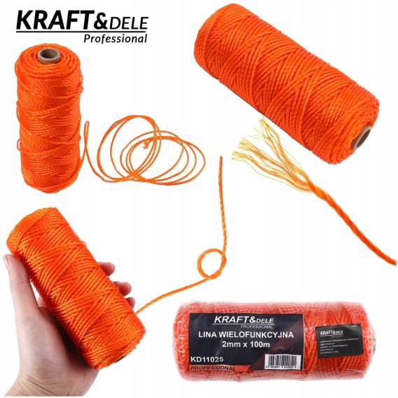 Lina Wielofunkcyjna 2mm x 100m Pomarańczowa Ogrodowa Namiotu KRAFT&DELE