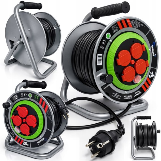 M PRZEDŁUŻACZ BĘBNOWY BUDOWLANY OGRODOWY 25M 3x2,5 KABEL NA BĘBNIE METALOWY