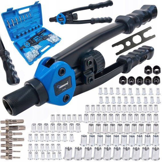Ręczna nitownica do nitonakrętek + zestaw nitonakrętek oraz głowic. Urządzenie wykonane z materiałów najwyższej jakości zapewnia długotrwałe bezproblemowe działanie w warunkach domowych oraz profesjonalnych.