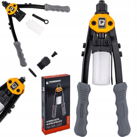 Nitownica ręczna do nitów zrywalnych Powermat to solidne i uniwersalne narzędzie przeznaczone do trwałego łączenia materiałów w pracach warsztatowych, montażowych i serwisowych. Obsługiwany jest szeroki zakres nitów o średnicach od 3.2 do 6.4 mm, a w zestawie znajduje się trzpień 6.4 mm, co umożliwia natychmiastową pracę z większymi nitami.