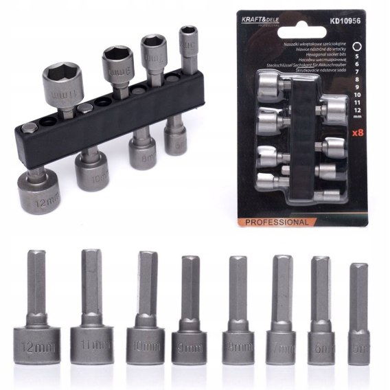Nasadki do Wkrętarki Sześciokątne 8 Elementów 5-12 mm Kraft&Dele