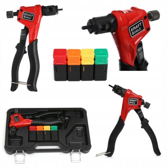 Profesjonalna nitownica ręczna model KD10551 polskiej marki KRAFT&DELE. Wykonana z najwyższej jakości materiałów, w tym stali oraz aluminium.