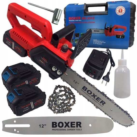 ✳️ AKUMULATOROWA PILARKA PIŁA ŁAŃCUCHOWA DO DREWNA 2 X 36V 6AH 12" BOXER BX-3312 ❗️❕