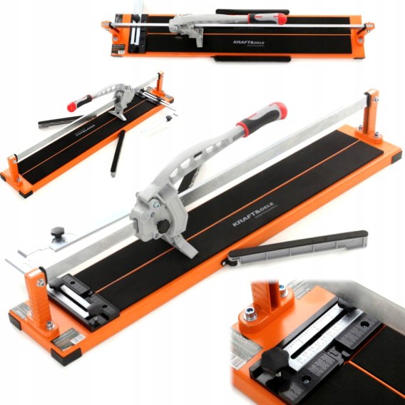 Przecinarka do glazury KD1578 marki Kraft&Dele składa się ze stabilnej podstawy wykonanej z grubej blachy stalowej wyścielonej warstwą technicznej mikrogumy, dwóch równoległych prowadnic i przesuwanego po nich zespołu tnącego.