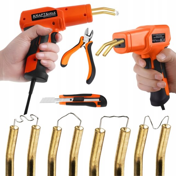 Profesjonalny zestaw naprawczy do spawania tworzyw sztucznych Ta nowa spawarka z tworzywa sztucznego jest narzędziem do naprawy, spawania, które zamyka pęknięcia z tworzywa sztucznego poprzez spawanie elektrotermiczne i szycie spawalnicze, aby osiągnąć cel naprawy.