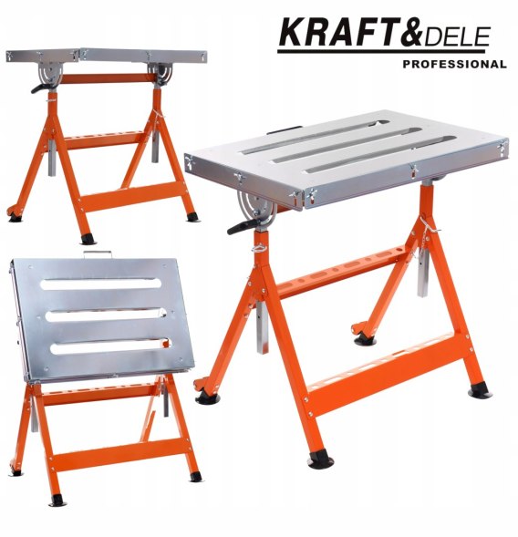 Mobilny stół spawalniczy firmy KRAFT&DELE można łatwo złożyć w celu wygodnego transportu do miejsca pracy. Regulacja wysokości, dzięki czemu idealnie dopasowuje się do rozmiaru ciała.