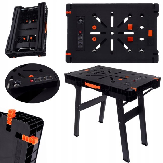 Stół Warsztatowy Zaciskowy Składany 500 Kg Listwa Zasilająca Gniazdka