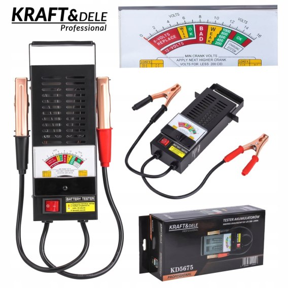 》》》Tester analogowy do sprawdzania akumulatorów 6/12V 200-1000A Kraft&Dele