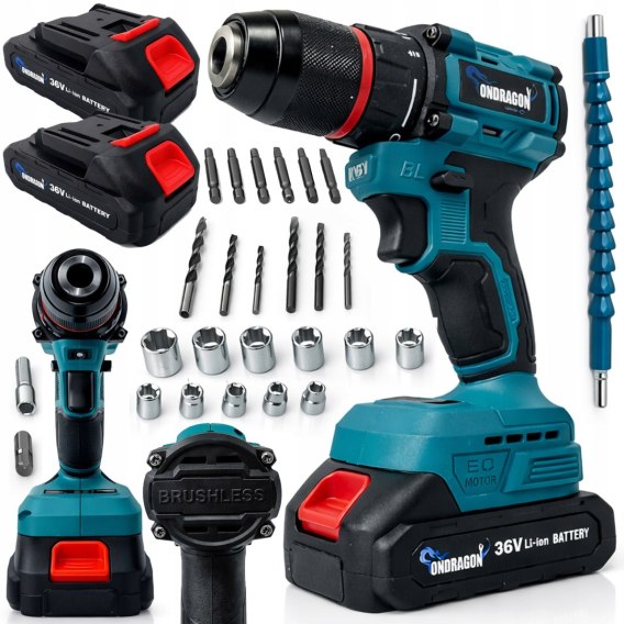 WIERTARKO WKRĘTARKA AKUMULATOROWA BEZSZCZOTKOWA UDAROWA 36V LED 2xAKU BITY