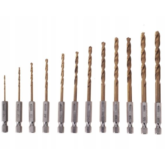 WIERTŁA TYTANOWE DO METALU BETONU ZESTAW HSS 13SZT