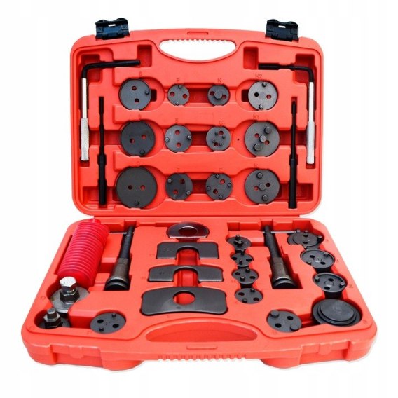 Zestaw służy do cofania (wyciskania) tłoczków w cylinderkach układów hamulcowych. Jest on niezbędny przy naprawach pojazdów wyposażonych w hamulce tarczowe.
