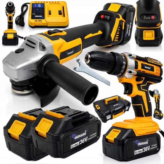 ZESTAW NARZĘDZI AKU 2X 36V 2w1 WKRĘTARKA + SZLIFIERKA AKUMULATOROWA MOCNA