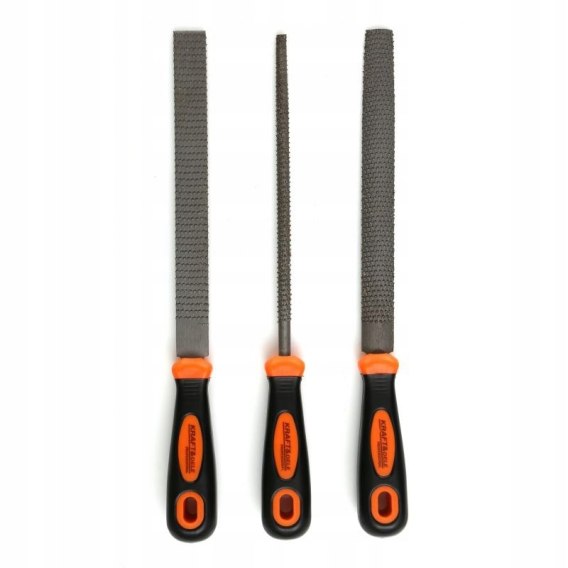 - 3 częściowy zestaw pilników: pilnik płaski 200mm, pilnik półokrągły 200mm, pilnik okrągły 200mm