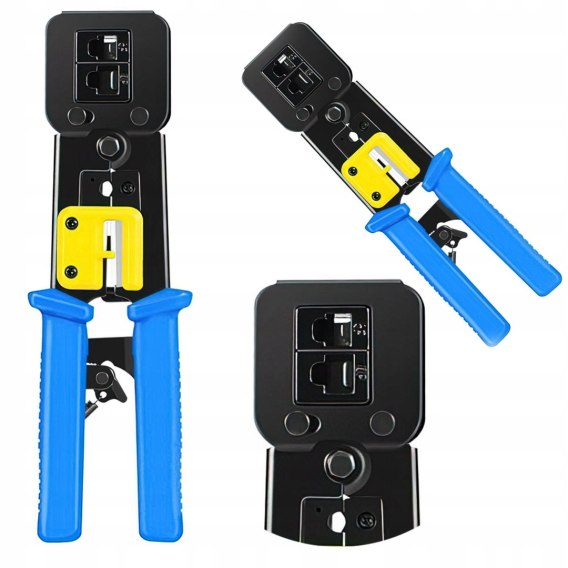 Uniwersalna zaciskarka przelotowa RJ45 marki Kraft&Dele model KD10883 przeznaczona do zarabiania koncówek komputerowych lub telefonicznych. Niezbędne narzędzie każdego instalatora.