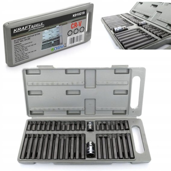 Zestaw Komplet Bitów Specjalnych HEX TORX SPLINE 40 Elementów Kraft&Dele