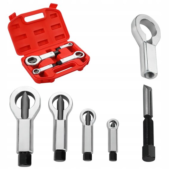 ✨ Zestaw został zaprojektowany do łatwego i bezpiecznego usuwania zardzewiałych, uszkodzonych lub zapieczonych nakrętek bez ryzyka uszkodzenia gwintu śruby.