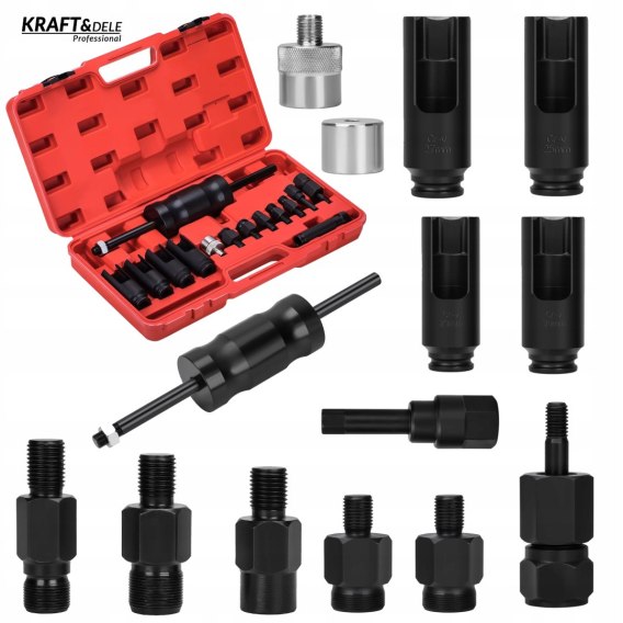 ✴️ Kompletny zestaw – zawiera różne typy ściągaczy: młotek bezwładnościowy, adaptery gwintowane i przystawki, co pozwala dobrać odpowiednie narzędzie do konkretnego typu wtryskiwacza.
