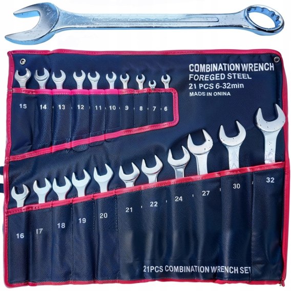 21EL KLUCZE PŁASKIE OCZKOWE 6-32 ZESTAW Komplet Kluczy Płaskich Pokrowiec