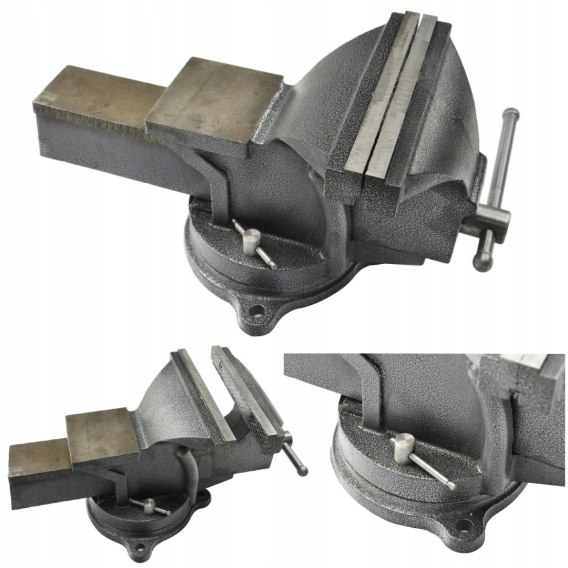Imadło ślusarskie obrotowe, wykonane z wysokiej jakości materiałów. Stalowe szczęki imadła z antypoślizgowymi nacięciami krzyżykowymi, dodatkowo hartowane. Wytrzymała i solidna konstrukcja pozwala pewnie zamocować wybrany przez nas przedmiot w imadle oraz gwarantuje długi czas eksploatacji.