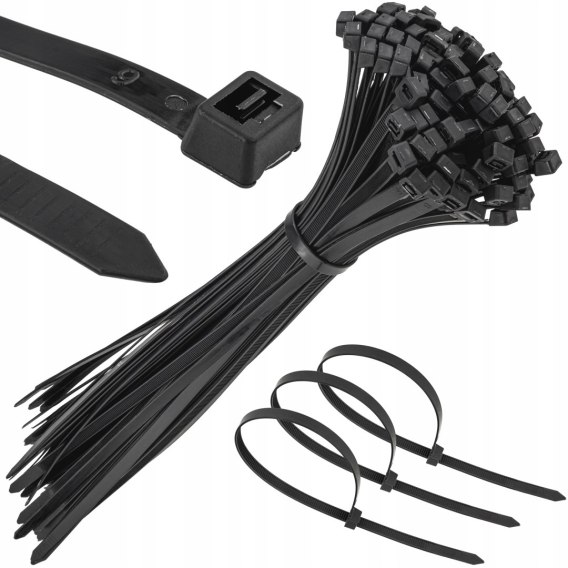 Opaski zaciskowe 7.6 x 400 mm, w kolorze czarnym, pakowane po 100 szt. Przeznaczone są do łączenia wiązek kabli elektrycznych, przewodów, rurek, węży lub też do szybkich doraźnych naprawach. Proste w montażu. Posiadają dużą odporność na zrywanie. Dostępne są w wielu rozmiarach oraz kolorach. Gęste ząbki na całej długości pozwalają na precyzyjne dopasowanie pętli opaski do rozmiaru wiązki. Opaski możemy zaciskać ręcznie lub za pomocą specjalnego przyrządu.