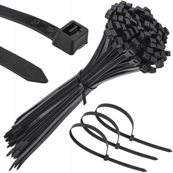 Opaski zaciskowe 8.8 x 500 mm, w kolorze czarnym, pakowane po 100 szt. Przeznaczone są do łączenia wiązek kabli elektrycznych, przewodów, rurek, węży lub też do szybkich doraźnych naprawach. Proste w montażu. Posiadają dużą odporność na zrywanie. Dostępne są w wielu rozmiarach oraz kolorach. Gęste ząbki na całej długości pozwalają na precyzyjne dopasowanie pętli opaski do rozmiaru wiązki. Opaski możemy zaciskać ręcznie lub za pomocą specjalnego przyrządu.