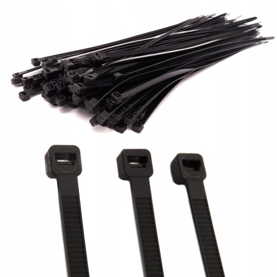 MOCNE OPASKI ZACISKOWE 2,5x200mm 100 SZT CZARNE TRYTYTKI KABLOWE NYLONOWE