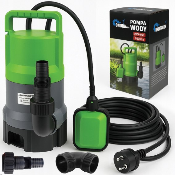 POMPA ZATAPIALNA DO WODY CZYSTEJ BRUDNEJ DESZCZÓWKI z PŁYWAKIEM 2000W mocna