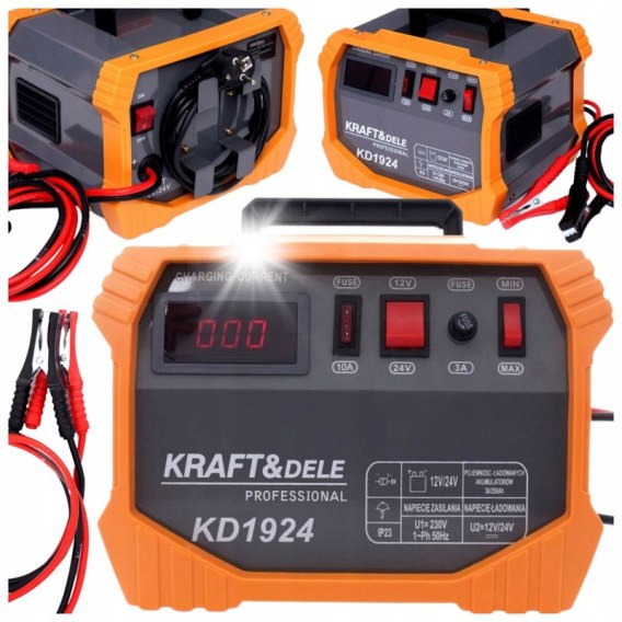 Prostownik KD1924 Polskiej firmy Kraft&Dele to niezawodne urządzenie służące do ładowania akumulatorów pracujących z silnikami benzynowymi i diesela.