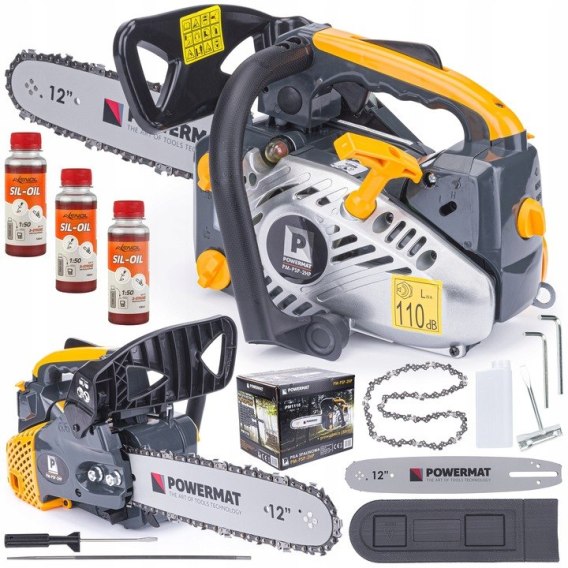 Piła spalinowa PM-PSP-2HP firmy POWERMAT jest najnowszym modelem piły spalinowej do zastosowań zarówno amatorskich jak i profesjonalnych. Maksymalna moc urządzenia to 2,0KM uzyskiwana przez silnik o pojemności 25,4cm³.