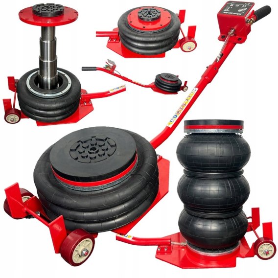 Podnośnik pneumatyczny poduszkowy to profesjonalny sprzęt, który z powodzeniem może być używany m .in. w zakładach wulkanizacyjnych oraz warsztatach samochodowych, czy w gospodarstwach rolnych. Prezentowany bałwanek posiada wzmocnioną konstrukcję z mocniejszymi tłokami, maksymalnie uniesie punktowo pojazdy o masie aż do 3,5 ton. Wewnątrz poduszki zastosowano wysokiej jakości teleskop wewnętrzny zapewniający stabilność konstrukcji nawet pod maksymalnym obciążeniem. Guma pozwala na bezpieczne unoszenie oraz ułatwia umiejscowienie podnośnika we właściwym miejscu co znacznie przyspiesza i ułatwia pracę. Podnośnik zasilany jest sprężonym powietrzem o ciśnieniu roboczym maks. 12 bar.