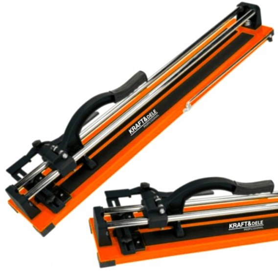 Przecinarka do glazury KD10673 marki Kraft&Dele składa się ze stabilnej podstawy wykonanej z grubej blachy stalowej wyścielonej warstwą technicznej mikrogumy, dwóch równoległych prowadnic i przesuwanego po nich zespołu tnącego.