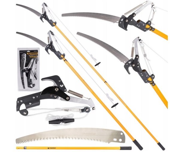 Nożyce na wysięgniku marki POWERMAT, ostrza wykonane są ze stali, która zapewnia odpowiednią twardość i umożliwia precyzyjne i łatwe cięcie. Nożyce służą do przycinania i pielęgnacji drzew na wysokości. Wysięgnik pozwala na dobranie najwygodniejszej pozycji do pracy.