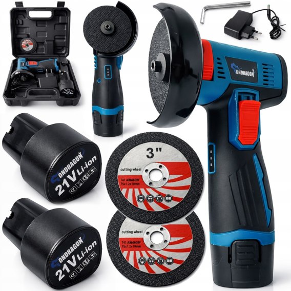 SZLIFIERKA KĄTOWA DO CIĘCIA AKUMULATOROWA 19500 RPM 2XTARCZA 2xAKU 21V