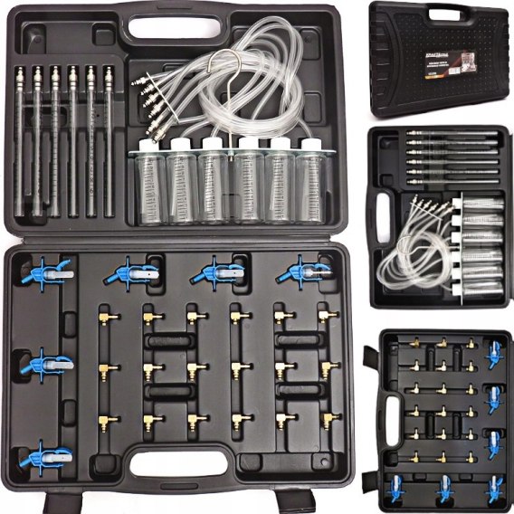 ✅Bogaty zestaw końcówek i akcesoriów pozwala na pomiary układów wtryskowych firmy Bosch, Siemens, Denso, Delphi w silnikach do sześciu cylindrów.