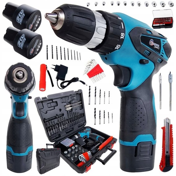 ✅ W zestawie znajdują się 2 akumulatory o pojemności 2,2mAh, które gwarantują nieprzerwaną pracę z wkrętarką.