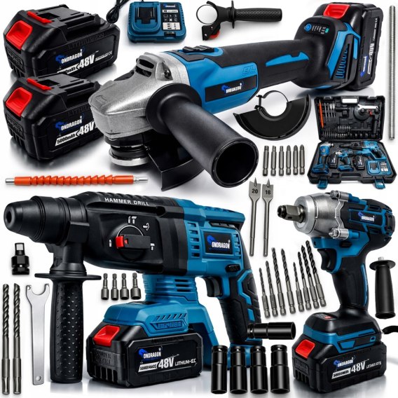 MEGA ZESTAW KLUCZ UDAROWY+ SZLIFIERKA + MŁOTOWIERTARKA AKUMULATOROWA 48V WALIZKA AKUMULATOR MEGA ZESTAW