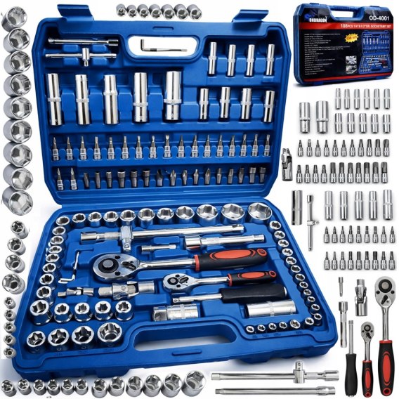 ZESTAW KLUCZY NASADOWYCH 108 elementów ze stali CHROME VANADIUM