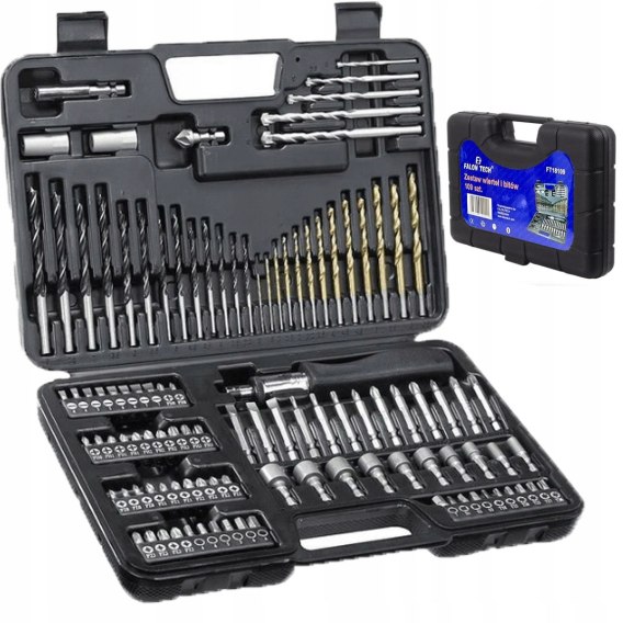 ZESTAW WIERTEŁ WIERTŁA DO METALU BETONU DREWNA +BITY 109 EL NASADKI NASADEK