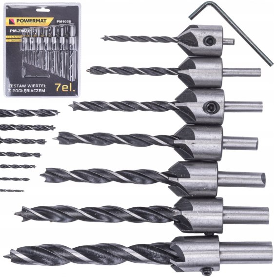 - 7 wierteł z pogłębiaczami